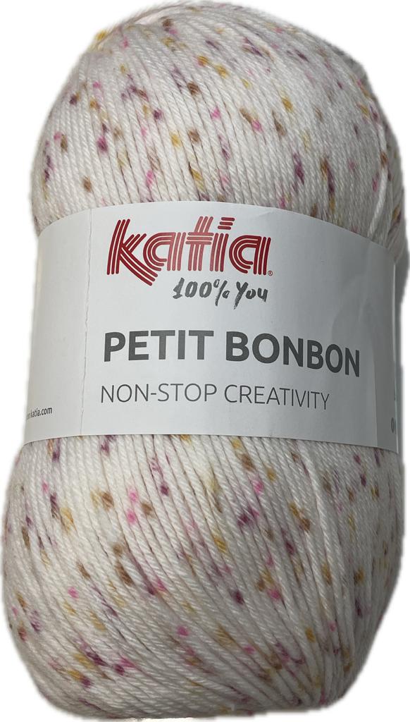Con petit bonbon podrás tejer una prenda de bebe con tan solo un ovillo ,si estas pensando en hacer alguna ropita de bebe o una mantita este ovillo es el ideal ,esta fantástica lana con motitas de colores le dará un toque fantástico .ovillo de 200 gramos y 480 metros se aconseja agujas del 3,5 -4
